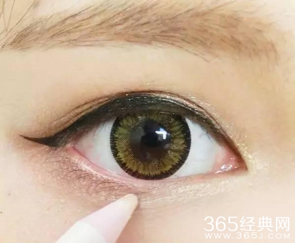 然后卧蚕的亮部,用卧蚕笔,浅金色,很自然。顺带提亮眼头~