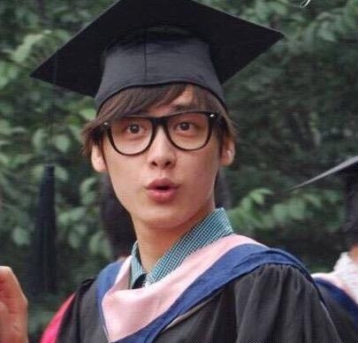 蒋劲夫穿着学士服的样子真的挺帅的,不过以他现在“肌肉男”的形象来看,刚刚毕业时候的蒋劲夫还是有几分稚气的,据说他也是校草那一挂的,之前备考上戏的时候就被韩国的星探相中,后来考进上戏之后他还当过书模~