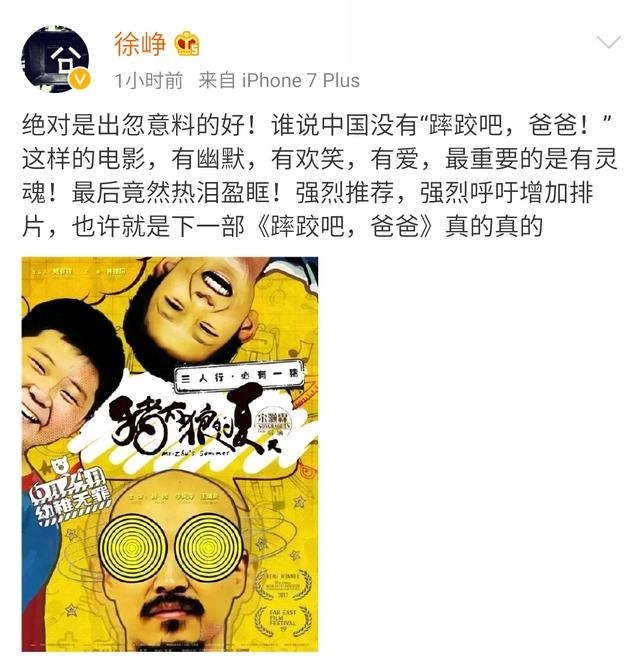 徐峥微博推荐这部《猪太郎的夏天》,赞其是中国版《摔跤吧,爸爸》,却被网友一顿怼:你可拉到吧,港囧的事我们还没忘那
