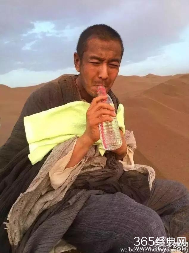 这部戏拍的很苦,网上至今流传着他光着头,灰头土脸、衣衫褴褛地坐在沙漠里喝水的照片,这应该是黄晓明入行以来最惨的形象。