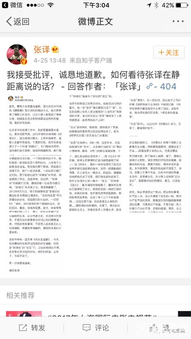 而张译做的,是写了一封极长的公开道歉信,不多解释,只是诚恳地道歉。