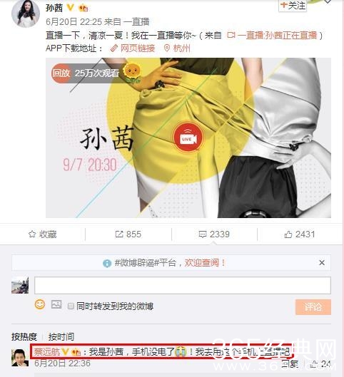 从孙茜的微博中不难看到,她昨天是晚上10点25分开始直播的,然而仅仅进行了不到一分钟就突然下线了,围观的粉丝们都有些莫名其妙。