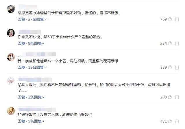 说到娱乐圈里的演值担当,范冰冰绝对算得上其中一个,颜值而言,天生椎子脸的范冰冰,很是惊艳,而这幅锥子脸,自然遗传其父母,前段时间,范冰冰的爸爸亮相就足以证明一切了,不过有那么些网友,硬要说范冰冰父亲虽然有颜值,但是却是个娘炮