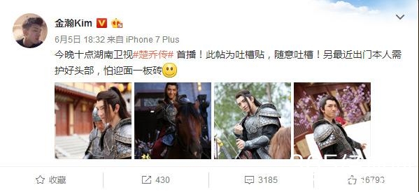 这部戏开播的时候,他特意发了一个吐槽帖子,随意吐槽,怕出门迎面一板砖!!!