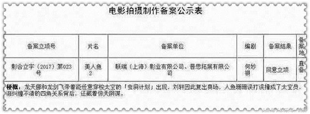 去年《美人鱼》打破了2个记录,一个是票房,一个是内地下映的时间,硬生生的延迟了1个多月才下映现如今,《美人鱼》已经过审,准备开拍,《美人鱼2》将讲述全新的剧情:龙天娜和龙剑飞带着能任意穿梭太空的【虫洞计划】出现,刘轩因此复出商场,人鱼姗姗误打误撞成了太空员,渐渐纠缠不清的四角关系背后,还隐藏着惊天阴谋。将于今年7月开拍。