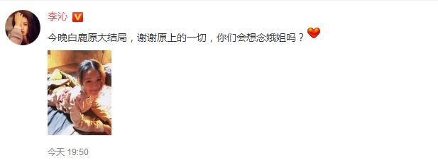 李沁说“今晚白鹿原大结局,谢谢原上的一切,你们会想念娥姐吗?”