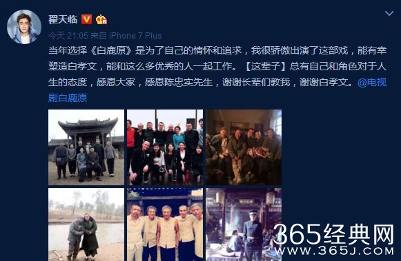翟天临说“当年选择《白鹿原》是为了自己的情怀和追求,我很骄傲出演了这部戏,能有幸塑造白孝文,能和这么多优秀的人一起工作。【这辈子】总有自己和角色对于人生的态度,感恩大家,感恩陈忠实先生,谢谢长辈们教我,谢谢白孝文。”