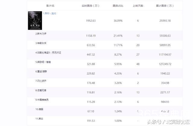 今天的冠军都不行,下面的小弟就更悲惨了,《新木乃伊》今天拿下1150万票房,累计票房逼近6亿,而今天的票房榜第三的《神奇女侠》连千万票房都没有突破,只拿下633万票房,《加勒比海盗5》和《摔跤吧爸爸》都进入了收官阶段,票房都在三四百万左右
