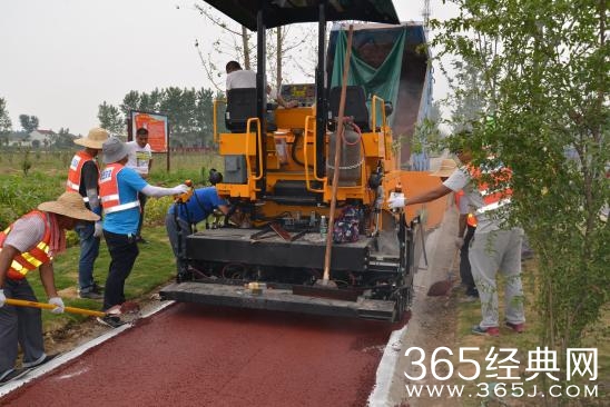 在施工现场,一辆辆彩色沥青运输车整齐排开,现场操作人员各司其职,按各自分工有条不紊地做好摊铺、压实等工序。经过施工人员不辞辛苦的劳作,一段美丽而漂亮的彩色沥青路面呈现在人们的眼前。