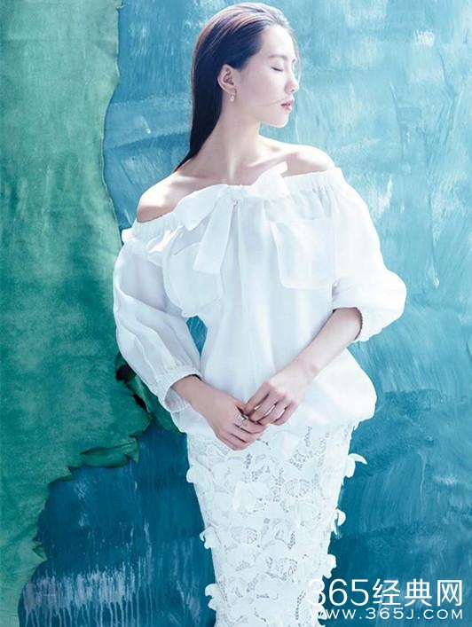 有线条感的锁骨和纤长的脖颈搭配,诗诗是完美驾驭一字领的代表。这张白衣照简直美呆了有木有