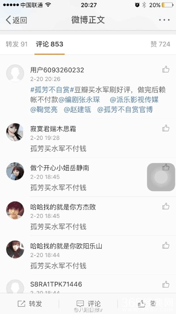水军不仅是个现象,在如今网上发言不需承担任何责任的时代,水军变成了一个可持续发展的致富路!当然,不敬业的水军真是让我们见到了不少笑料,前段时间就有《孤芳不自赏》在官博下讨薪: