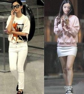 因为早前baby的全身照总是被网友各种吐槽五五开,身高一直被质疑,现身各种活动现场也都是起码10多公分以上的高跟鞋,之前机场拍摄的全身照无一例外的都被吐槽腿短。