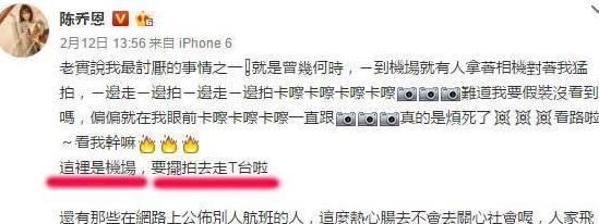 现在无论男女明星都把机场当T台,大家已经见怪不怪了,假街拍真摆拍,化妆灯光摄影一个都不能少,黑超和最新款包包一个都不能落下!后来看到陈乔恩怒怼机场跟拍上了热搜,这么耿直的女孩真是太少了~