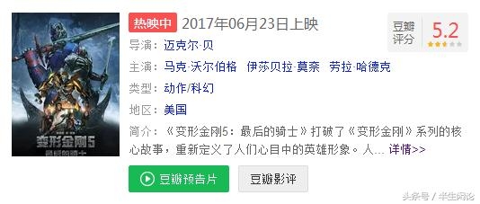 很多小伙伴看完后,依然是意犹未尽,小编走出电影院时,听很多人说还要喊朋友一起看,有的甚至还要来看第二遍。不过有人喜欢,就有人不喜欢呢,例如豆瓣那些文艺青年,《变形金刚5》在豆瓣的评分竟然只有5.2.这就有些尴尬啦。