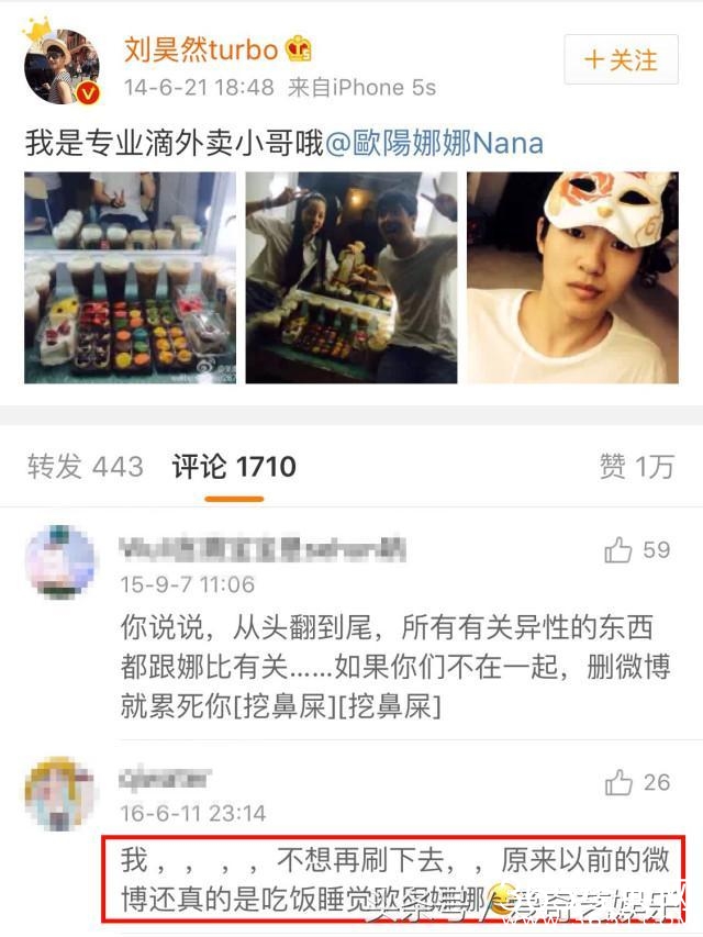 (刘昊然变身外卖小哥贴心为欧阳娜娜送外卖,粉丝点评刘昊然微博:还真是吃饭、睡觉、欧阳娜娜)