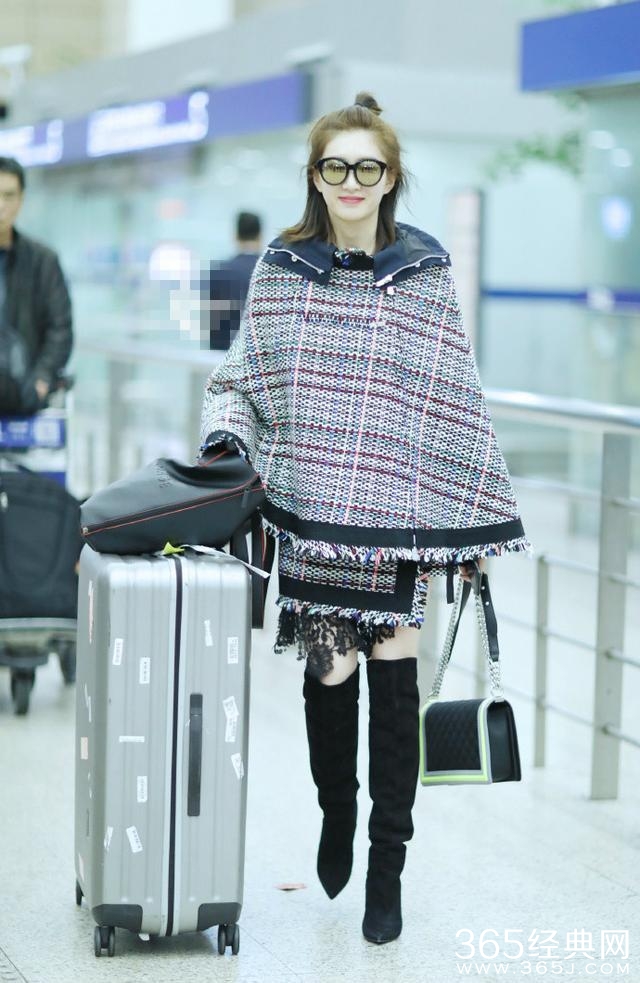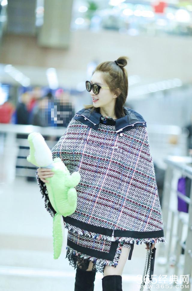 虽然江疏影已经30岁了,可是看她的装扮,就像一个二十出头的女孩子。一件像毯子的格子斗篷,在扎这一个丸子头,看起来非常的减龄,就像一个充满青春气息的少女。