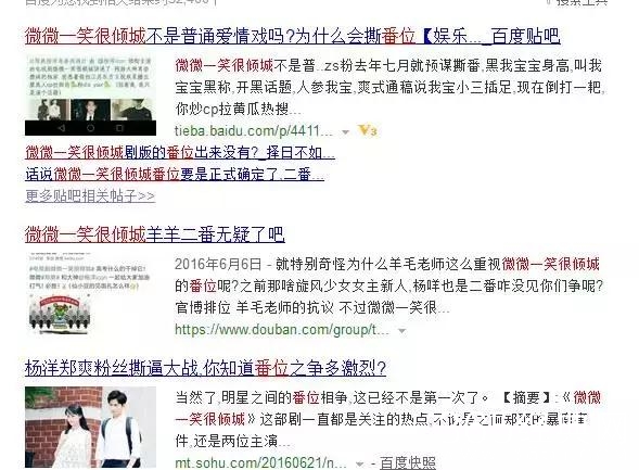 《微微一笑很倾城》里的郑爽粉丝和杨洋粉丝、《孤芳不自赏》里baby粉丝和钟汉良粉丝,也都为了“谁是一番”的问题互不相容。