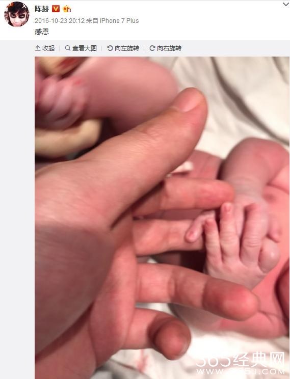 晋升为人父的陈赫也是第一时间在微博里晒出了宝贝的小手照,开心报喜!