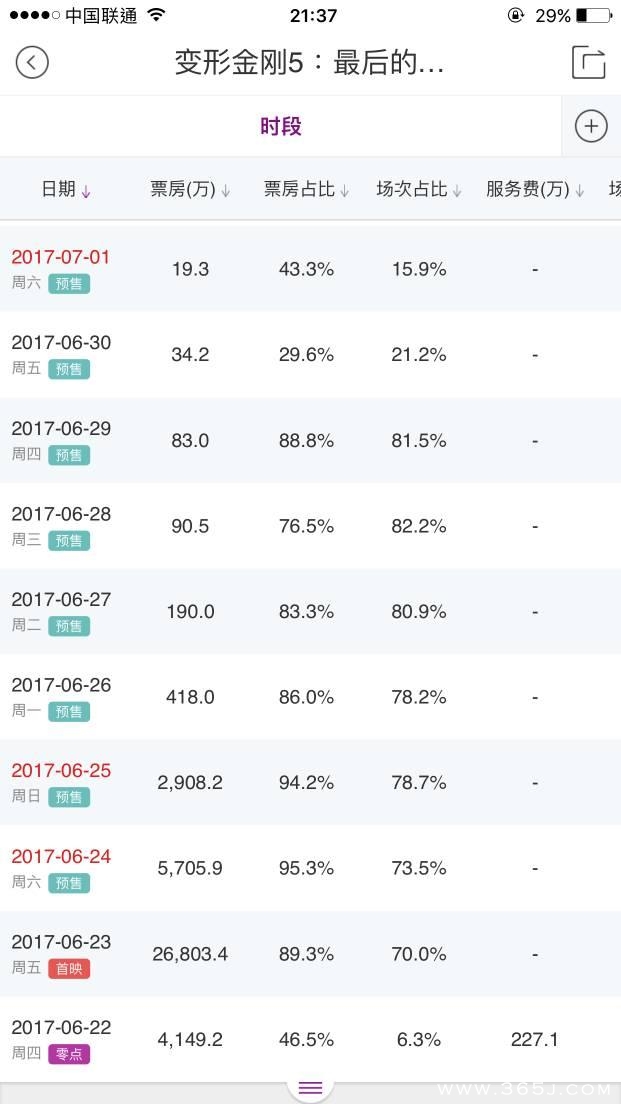 其次,从《变形金刚5》近一周的排片情况看,霸占市场的姿态十分明显,整个中国电影市场在这段时间基本就只有这一部电影会贡献票房,市场占有率超过90%,且从排片占比达到惊人的82%就足以见得市场对这个“票房巨鳄”有多么觊觎。