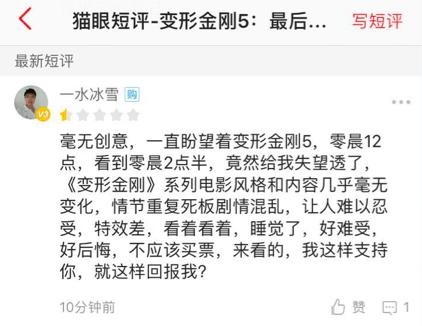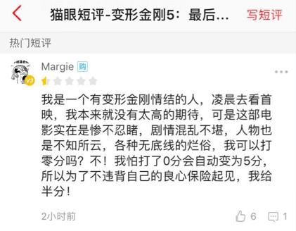 包哥刷了所有平台的评分和评论,看的心惊肉跳,迈克尔·贝快点下岗的呼声一波又一波,抱着情怀心情去看片的粉丝差评一片,系列最差成了出现率最高的词儿。就连爆炸贝最引以为豪的打斗场面,也被诟病“敷衍”“不走心”。