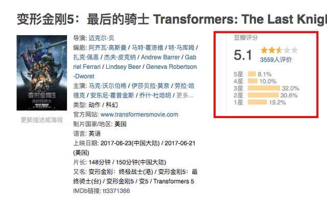 说到这,包哥必须澄清一下,对变形金刚系列包哥只有喜爱没有不敬,但是拍成这个样子,只能说心疼。毕竟想诺兰那么良心的导演不多,但拍成5.2的评分,迈克尔·贝真的逃不了干系,看了将近十年的变形金刚系列电影,越拍越差,越拍越离谱。