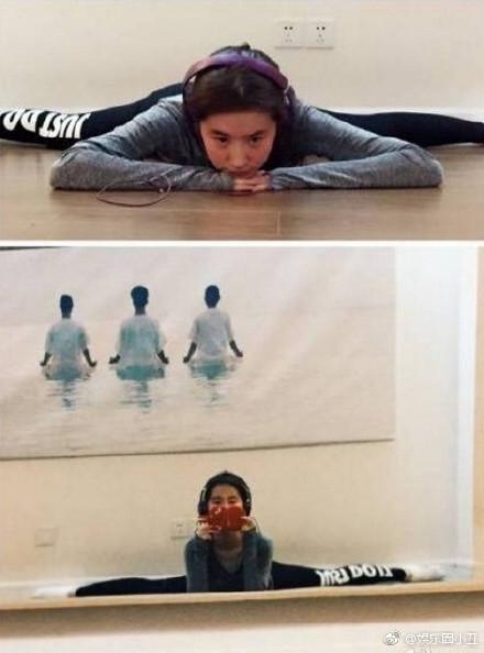 昨日(6月22日)。刘亦菲在微博上晒出自己练空中瑜伽的一张照片,照片中刘亦菲身穿紧身衣裤,练习一字马动作。她写到:别笑我,我已经尽力了。