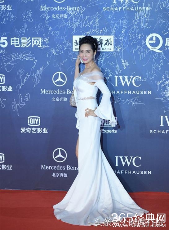 朱茵一袭薄纱礼服,很显身材,虽说身高不高,但是她的身材比例很好,而且身材很有型,穿的高贵端庄!