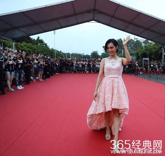 朱茵是一代人的女很,身材虽然娇小,但是颜值高啊!这一袭粉色连衣裙很显皮肤,加上朱茵的美丽妆容,给人种俏皮可爱的感觉,同时不乏一点妖娆。裙摆的设计很长,这对于朱茵来说有点吃亏,不过好在开叉的设计很显腿长啊!