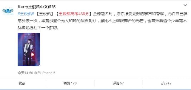 作为最受关注的考生,王俊凯,自然分数也是受到大家的讨论!王俊凯通过微博发布了自己的成绩: