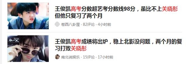 两个都是努力的少年,真的没必要那么吹捧啊!当年关晓彤就是一直卖学霸人设,导致后来很多人吐槽,一直上热搜,败坏了路人源。但是人家那是真学霸,结果都变这样了,王俊凯这个分数,再去卖学霸人设,真的会被黑惨啊!好担心~~~