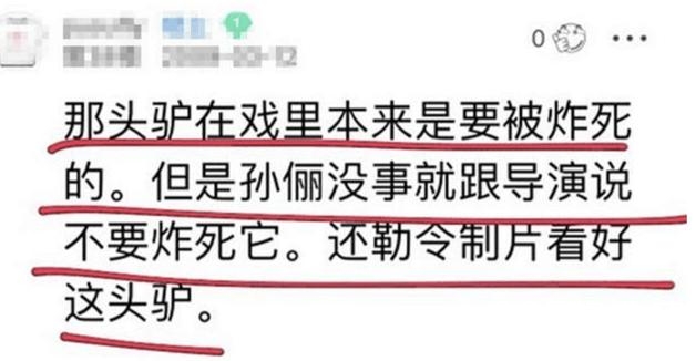 最近,有剧组成员曝光了一件事情,之前孙俪主演了一部电影,在电影里有一头驴,这头驴出现的作用就是被炸死,而剧组的确就是这么想的也是这么定的,但是孙俪得知以后非常惊讶,拍戏就拍戏真的有必要真的炸死一头驴么?于是孙俪就跟剧组争执不下,最后孙俪摊牌,如果真的炸死驴就不演了。最后只能安排假炸。在剧组同意之后孙俪还特意让人看好这头驴,不准有什么闪失。