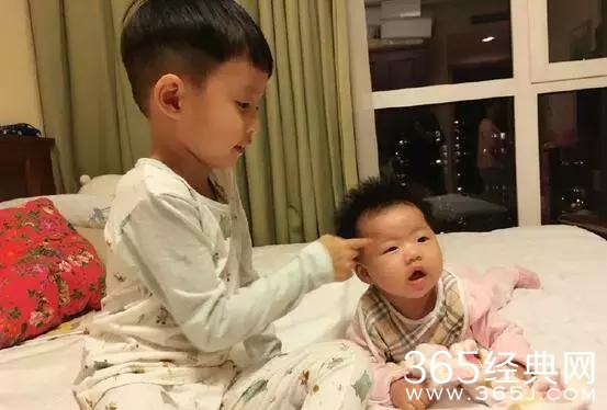 白色的床品,配上浅绿色窗帘,很清新简单的感觉,微博经常晒出两个孩子的互动,很是有爱呀,一儿一女真可谓是人生赢家;