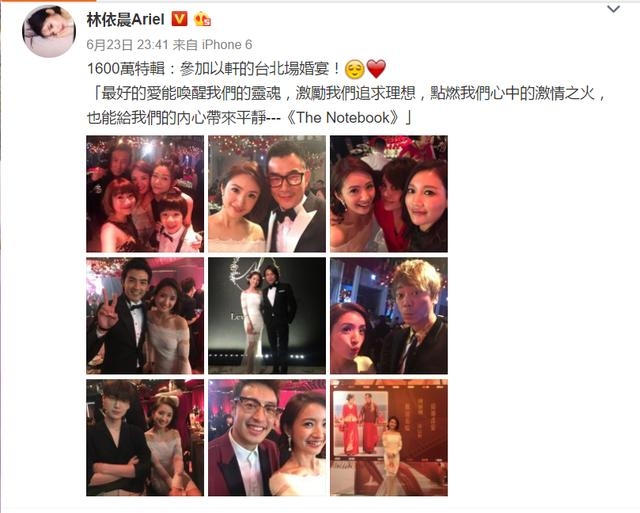 宴后,林依晨发了和多位好友及宾客合影哦。