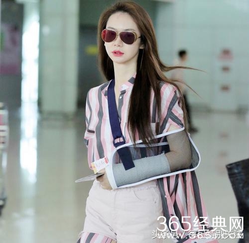 尽管受了如此重的伤,戚薇依然满脸风采,似乎这点小伤在她眼里根本不算事!更让人惊讶的就是戚薇的穿着,虽然左胳膊上打着石膏和绷带,但是穿上条纹上衣的她依然美丽动人!
