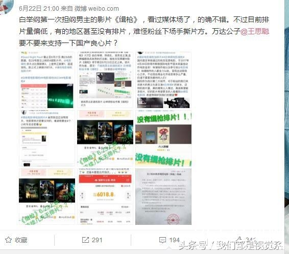 而另一部电影缉枪则因为首日在万达排片太少,遭到白举纲粉丝吐糟。