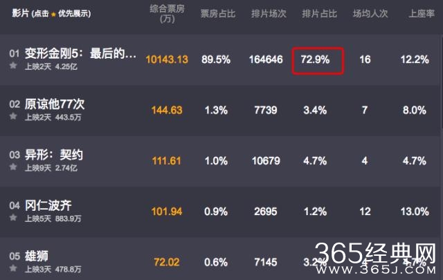 但是人家仗着在国内70%的排片量,刚上映两天就卷走4.25亿,而上映了9天的《异形:契约》也才不到3亿。