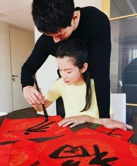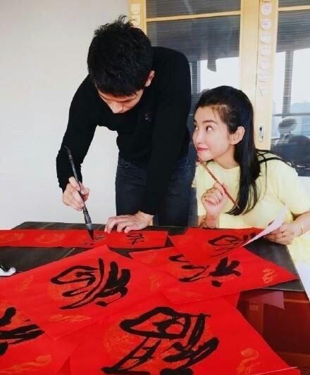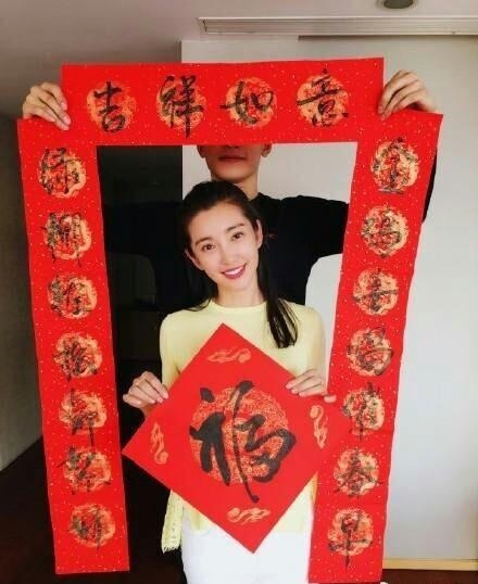 如果说年轻人的爱情是炽热浓烈的,那么李冰冰和她男友的秀恩爱方式就显得温馨而老派。两人过年时一起写春联↓