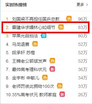 昨晚一个关于霍建华和林心如求婚细节的话题上了热搜↓