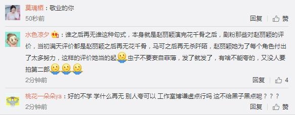赵丽颖的粉丝向来很给力,连舆论影响都会帮颖宝宝考虑到,有粉丝担心这句话会招黑,“不该用这句话!这样会对赵丽颖不好!她每一个角色都当的起但是不应该刷这个话题!不要被有心人利用了!”