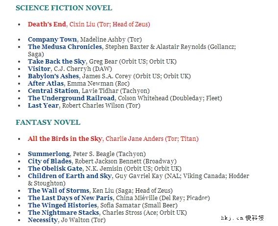其中,可能是《三体3:死神永生》最大对手、刚刚摘下星云奖的《All the Birds in the Sky(天空中所有的鸟)》此次摘下了轨迹奖最佳幻想长篇。