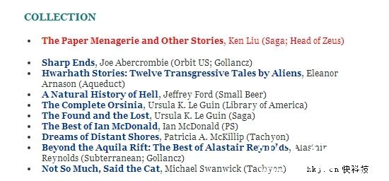 刘慈欣的《三体:死神永生》摘得最佳长篇科幻小说,刘宇昆(Ken Liu)的《折纸和其他故事(The Paper Menagerie and Other Stories)》摘得最佳短篇。