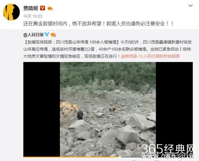 6月24日清晨,四川茂县发生了一起特大山体垮塌自然灾害,截止本文发布时,这起自然灾害已导致6人遇难,另有118位村民至今下落不明,而在灾难发生不久后,黄晓明不仅第一时间转发微博表达对灾区的关心,而且还通过其创办的明天爱心基金向灾区捐赠了30万元,并表示将视灾区救援进展,后期适当再增加一些追加援助。