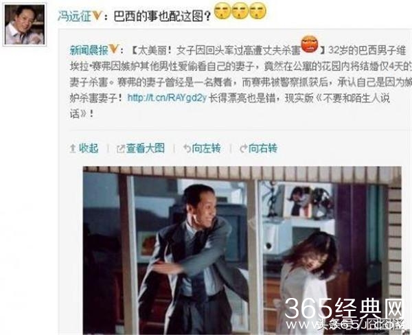 最搞笑的,冯远征还走出中国,为巴西“家暴男”代言。