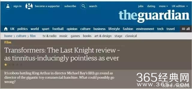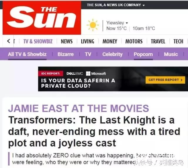 《太阳报》吐槽:变形金刚:最后的骑士乱七八糟,没完没,情节乏味,演出阵容无趣;
