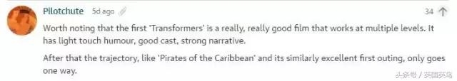 “变形金刚1确实是一部非常非常好看的电影,但最新的这部一无是处。”