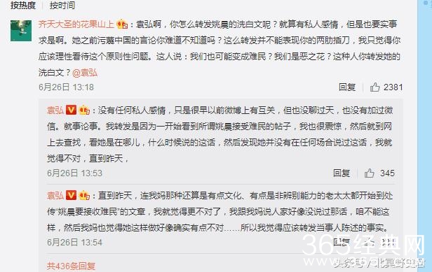 说到袁弘,很多人都觉得莫名其妙,他怎么就跟姚晨站一对了呢,而且姚晨还亲切的称他为老袁,不过袁弘转发了这条微博可引起了自己粉丝的不满,比如下面这位粉丝,就直接说质问袁弘为什么要转发姚晨的洗白文,而袁弘竟然还回复了,称自己跟姚晨不熟,只是出于正义,更拿出了自己妈妈来说明这个问题