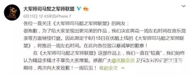 这剧也是命途多舛。播出前还遭遇了一些波折,原本定在6月15日上线播出,没想到临时跳票,改到22号才播出。后来制作方给出解释:为了给大家呈现出更完美的作品,我们决定再花一周左右时间在音乐混录等方面继续打磨”。