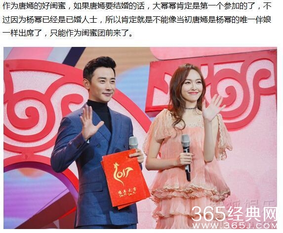说到唐嫣和罗晋这对,我想很多粉丝都在等着他们走进婚姻殿堂的那一刻吧,这两个由戏中擦出了火花,终走到一块了,糖糖自从和罗晋在一块之后,笑起来整个人都比以前更甜了,而且我们也都知道,唐嫣和杨幂是非常好的闺蜜。作为唐嫣好闺蜜的杨幂更是替她开心极了。