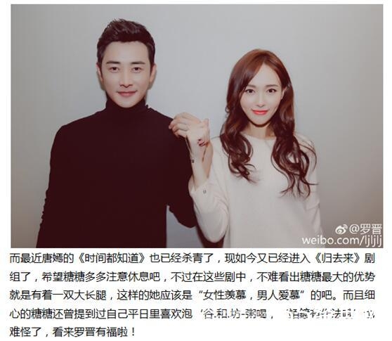 希望俩人可以尽快举办婚礼,当初据说是等糖糖拍完《时间都知道》,而罗晋拍完《为了你热爱整个世界》就结婚,现在就不知道噜。还是早点发糖吧!