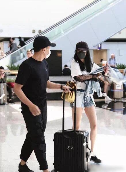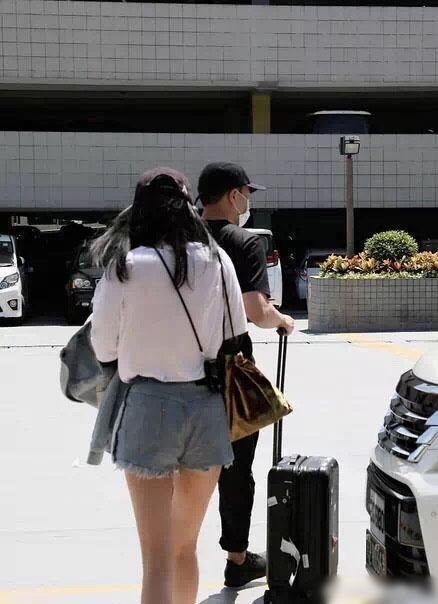 照中刘恺威接机拉着行李箱,照中的杨幂(女影星)穿短裤很美身段很好。